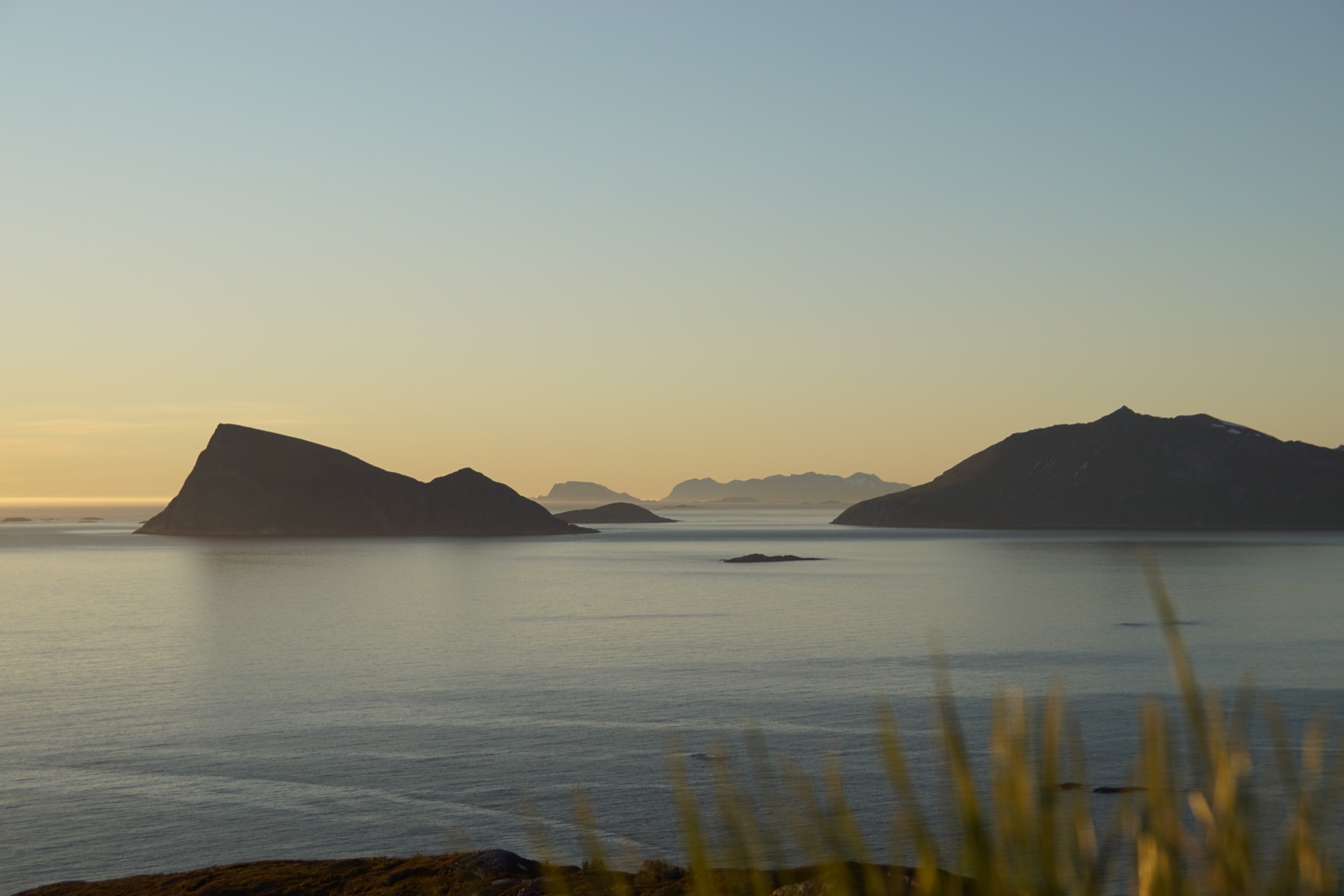 Magisk skue utover havet fra toppen av Hillesøya og Sommarøy utenfor Tromsø.