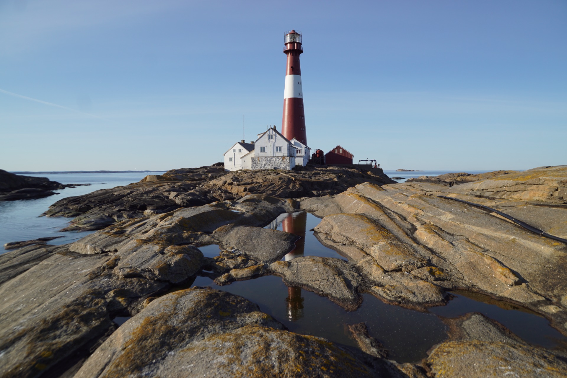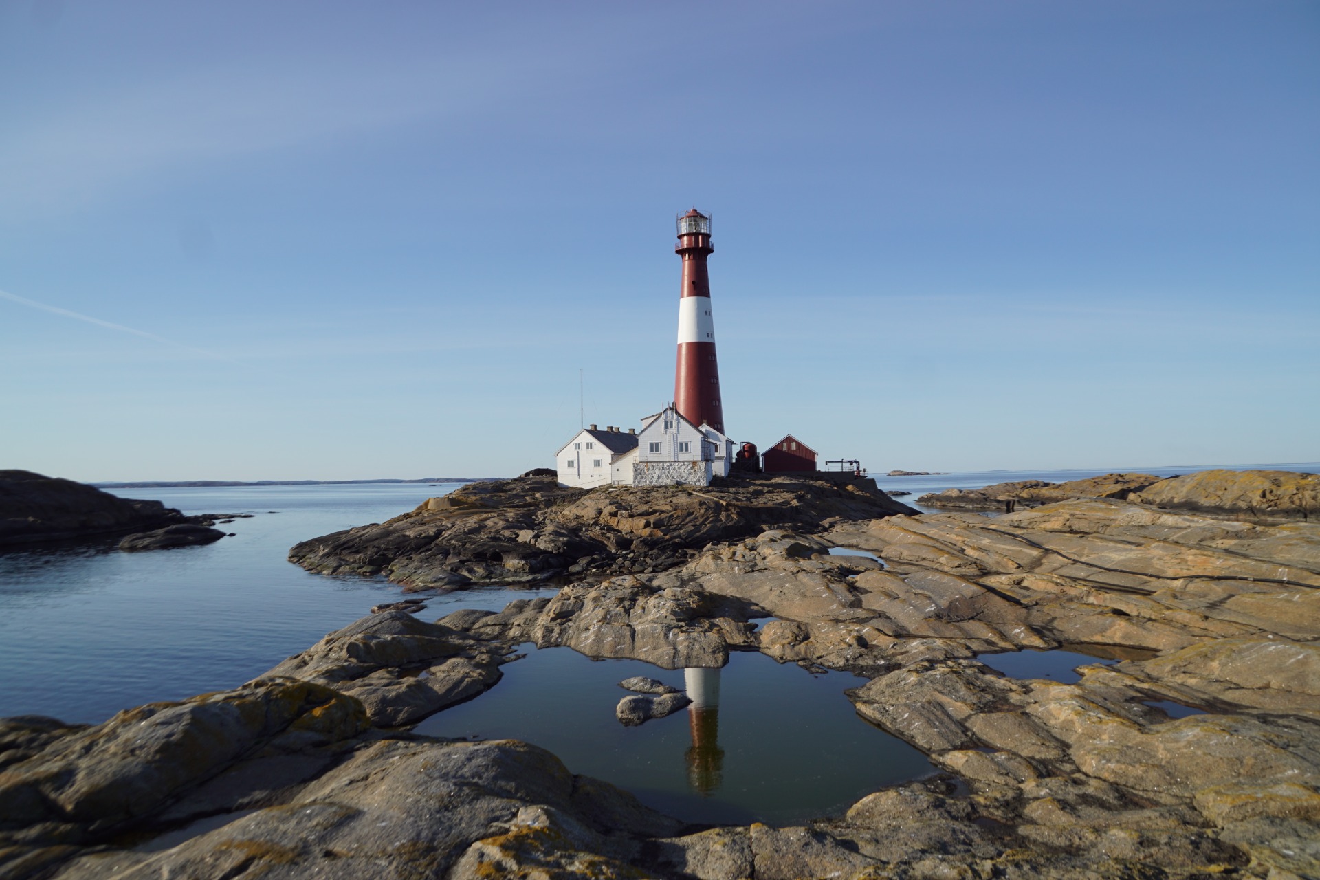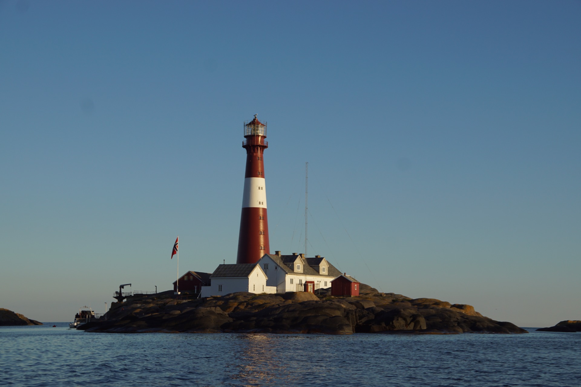 Selene på Tjømebåen med vakre Færder fyr i bakgrunnen.